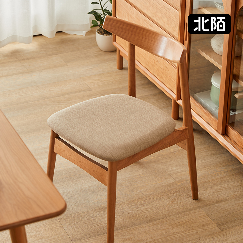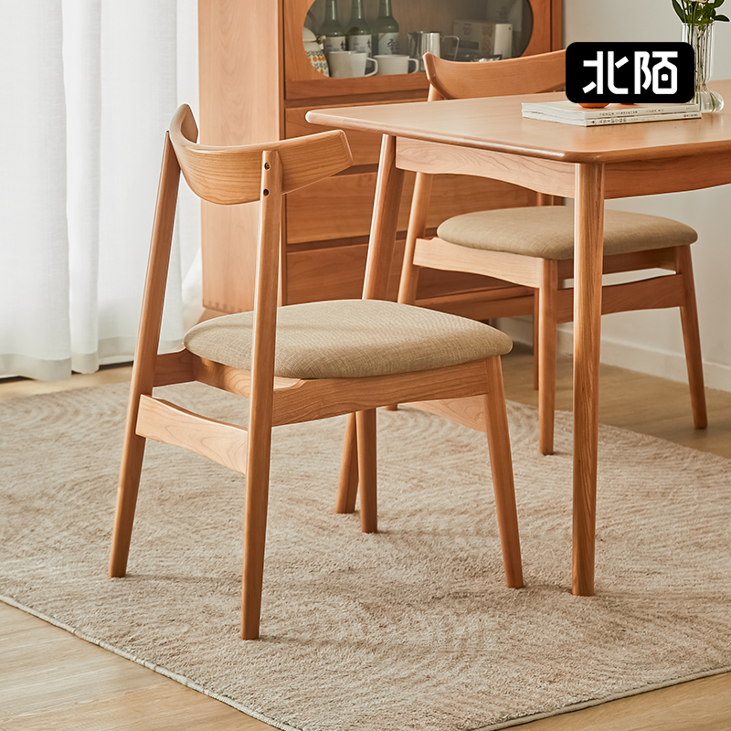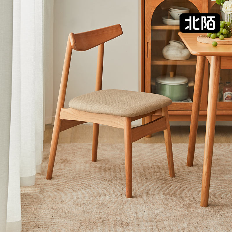 Beimo Furniture Dining Chair Nordic Simple White Oak Log Color Cherry Wood Leisure Backrest Fabric Solid Wood Chair Household
