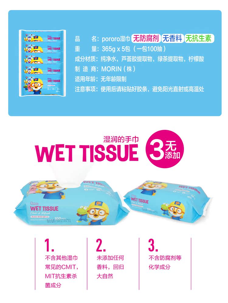Korea imports Le baby and toddler wet tissue towels newborn baby's hands and button pack with 5 packs