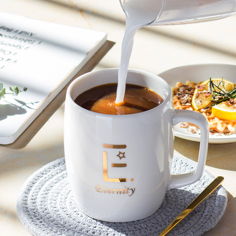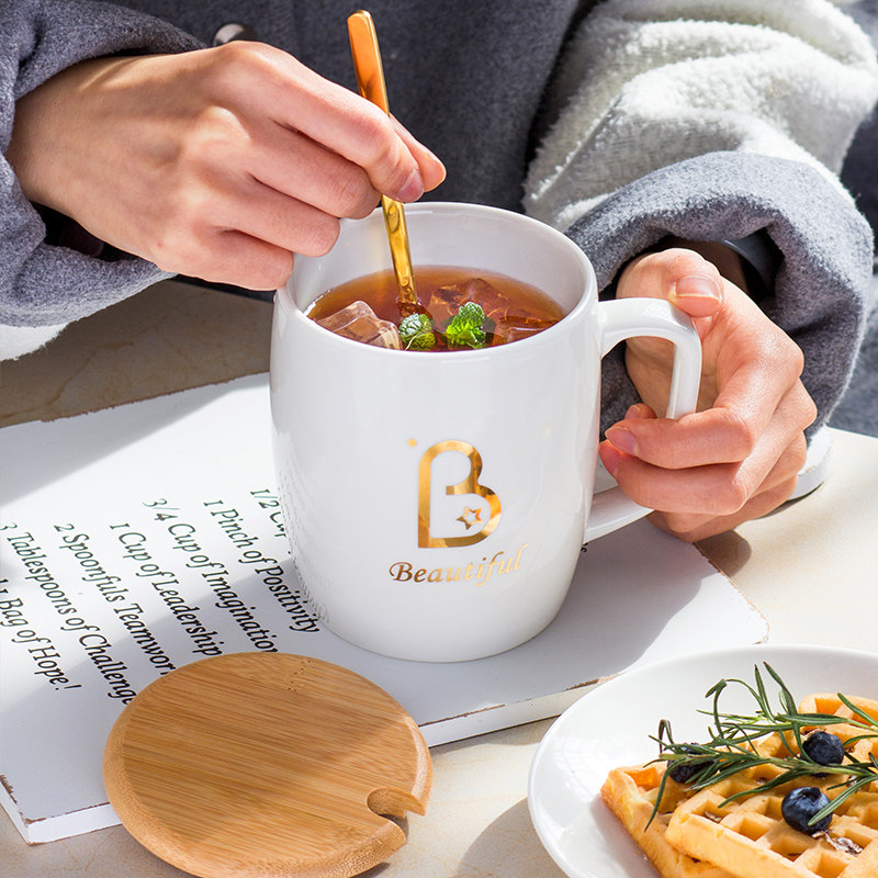 Creative cup ceramic coffee cup milk cup breakfast cup ceramic cup large capacity mug with lid spoon
