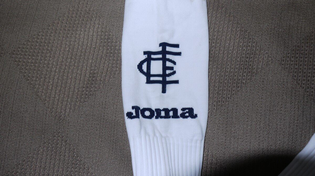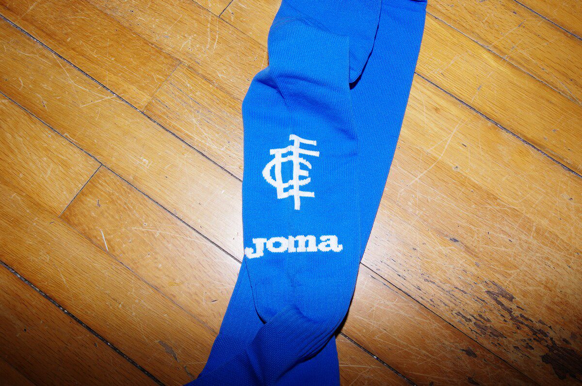White socks blue word
