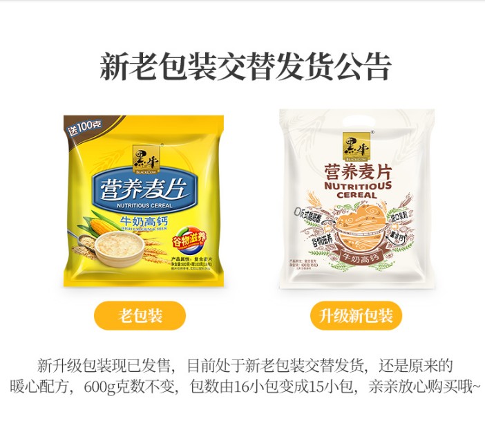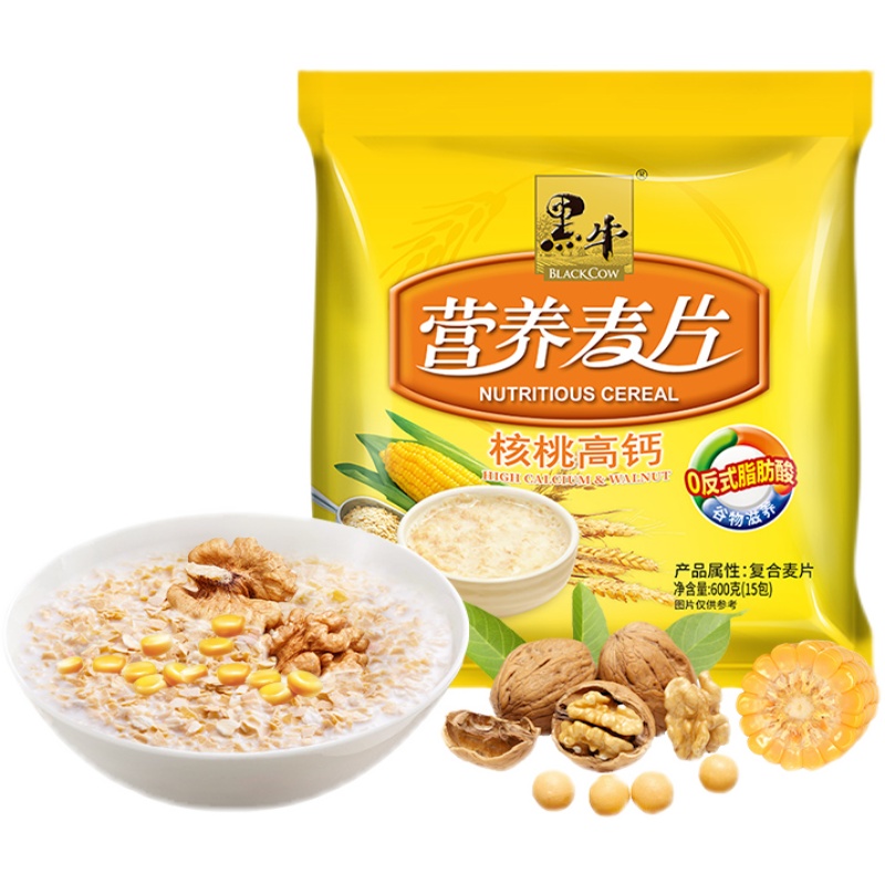 600g*2 bags of black cow milk high calcium walnut nutritious oatmeal ready-to-eat breakfast meal replacement can be eaten dry in multiple areas