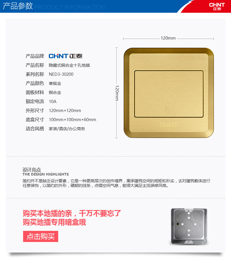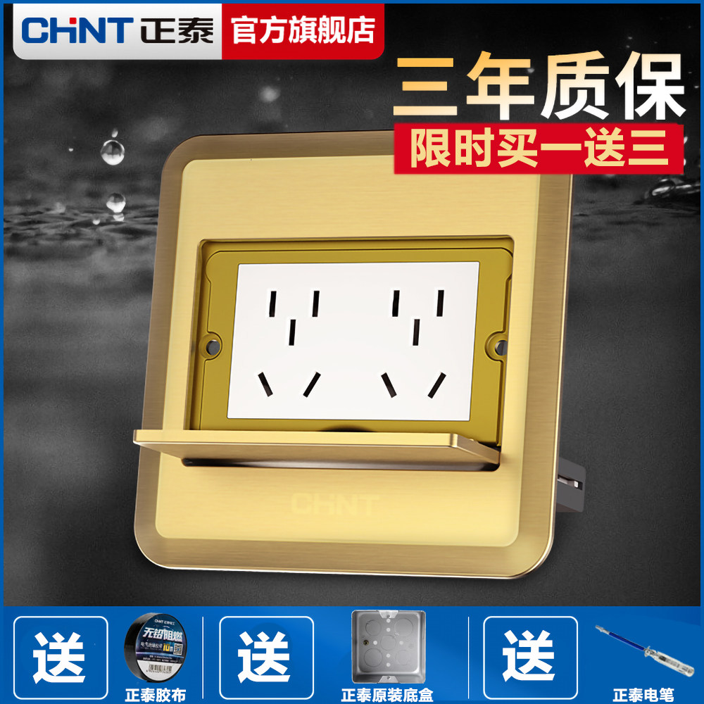 Positive Tai ground socket full copper waterproof ten holes without damping concealed double five-hole ground floor socket to insert home