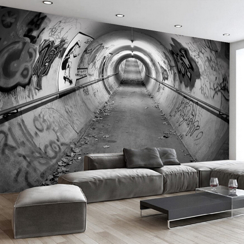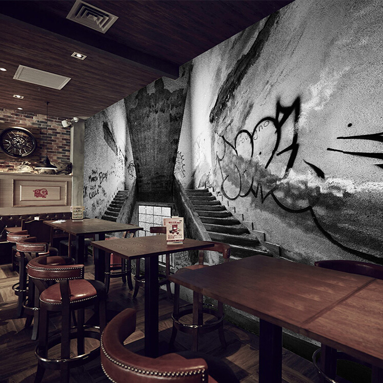 Custom nostalgic retro gray wallpaper coffee restaurant art 3D three-dimensional personality creative background wall graffiti mural