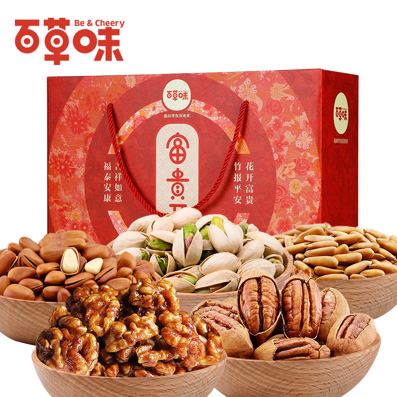 (Baicao Flavor-Dragon Boat Festival gift pack 1736g Fu Gui Kai) 14 bags of daily nuts Net Red snacks dried fruit gift box