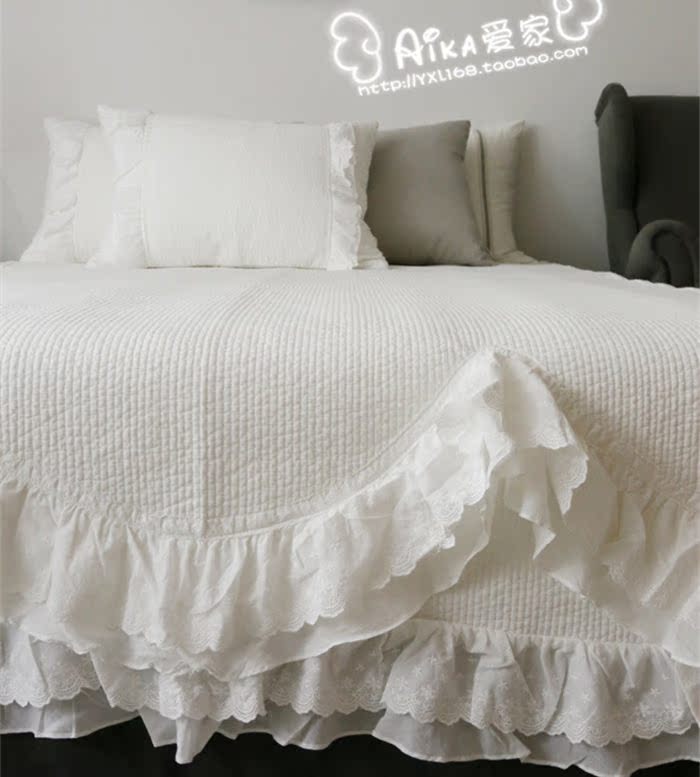 South Korea Sheets Korea High-end Luxury Lace Lace Lace Bedsheet Bed Cover Quilted Washed Cotton Pure Color-Taobao