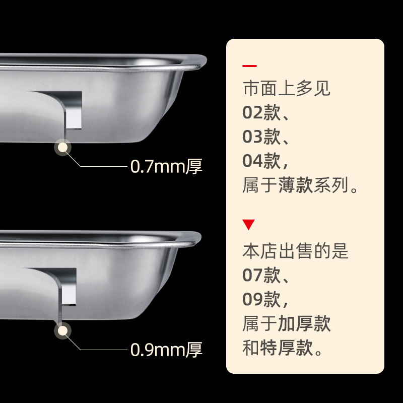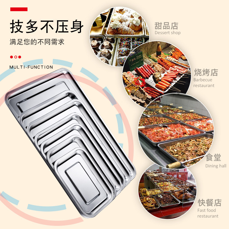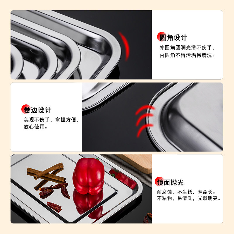 Thickened deepened stainless steel square pan rectangular stainless steel depository dish tray Tray Barbecue Dish 07 No magnetic
