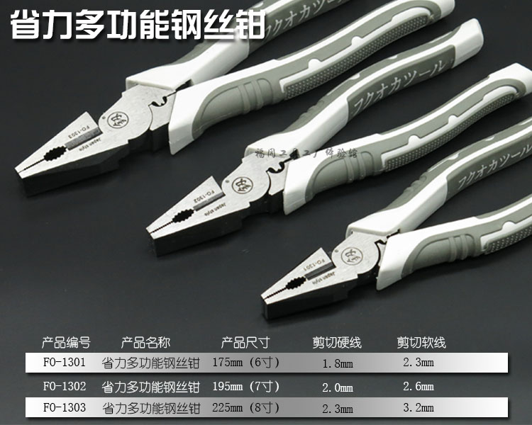 6 inch wire pliers 1301 (old type pressure line) 7 inch wire pliers 1302 (pressure line)8 inch wire pliers 1303 (pressure line)6 inch pointed nose pliers 13048 inch pointed nose pliers 13