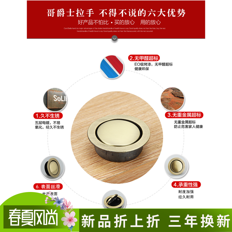 Concealed tatami handle embedded concealed concealed handle invisible drawer round integral cabinet wardrobe door five gold accessories