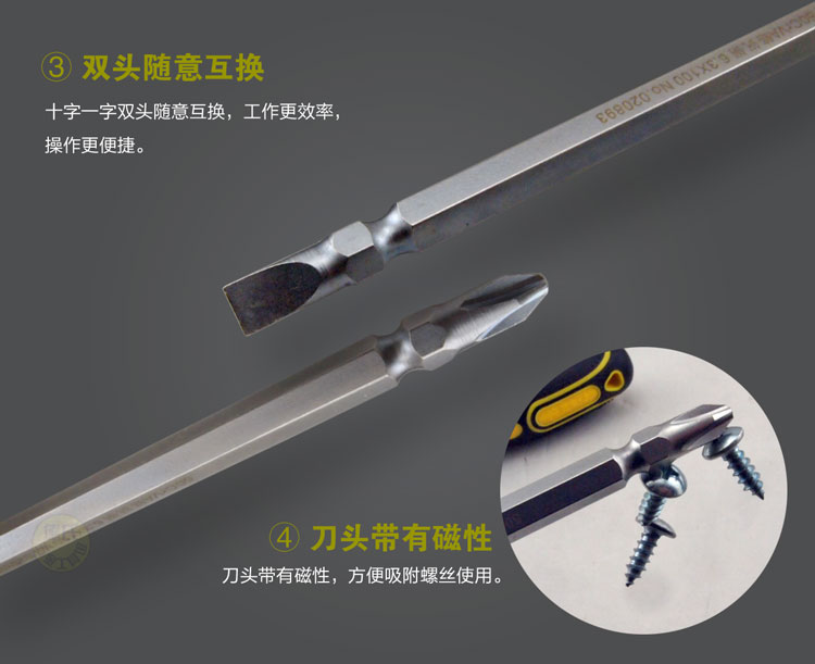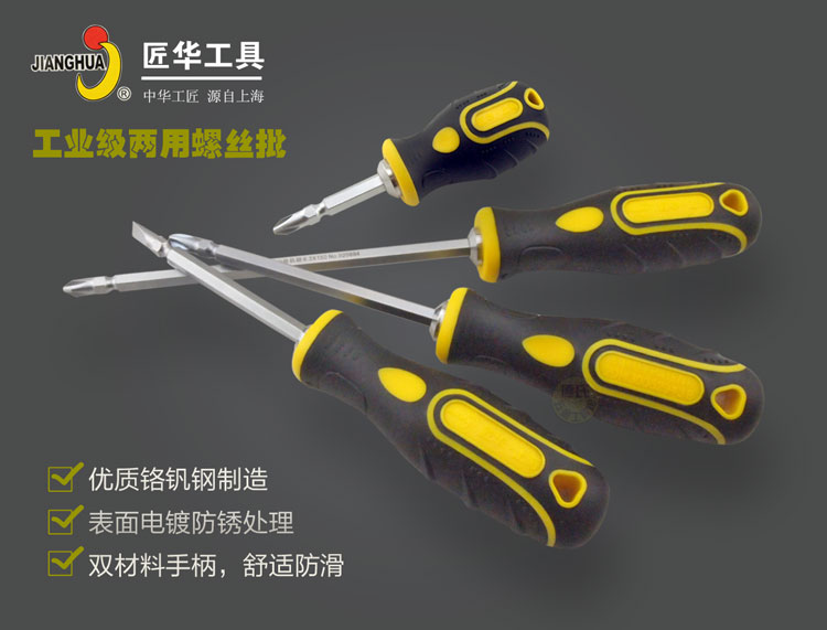 Artisan tools Industrial grade Dual-purpose screwdriver ten straight double head short shank screwdriver Home Plum Screw Driver with magnetic