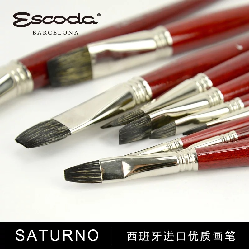 Spanish pen Crown Escoda oil painting paintbrush short flat peak weasel wool long pole SATURNO series 3622