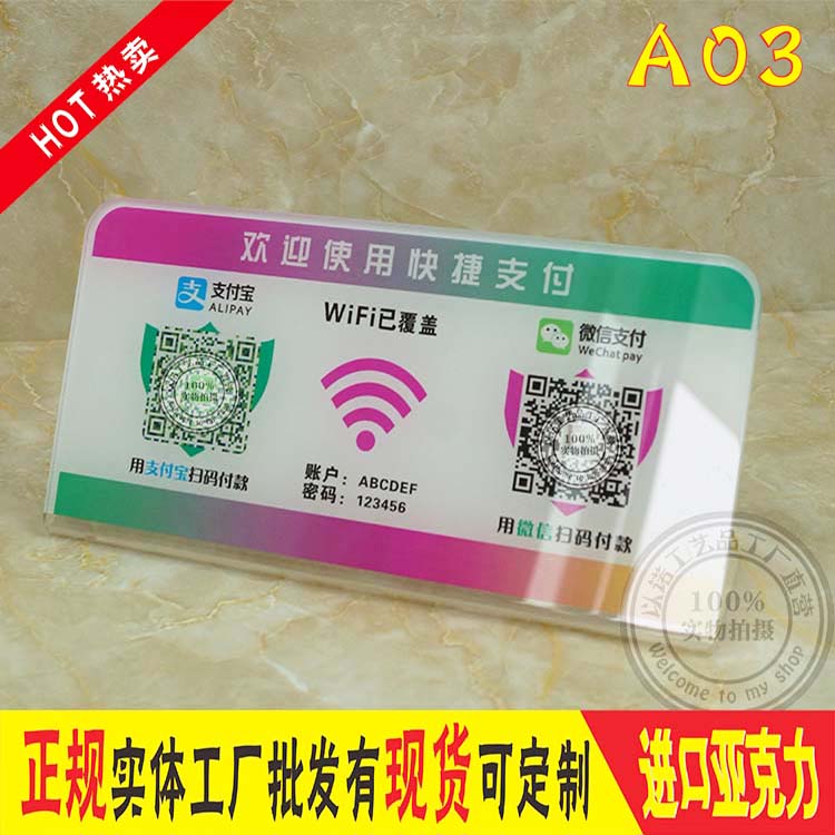 Acrylic WeChat QR code scan code Payment prompt Cash register counter card UnionPay logo table card Alipay logo card