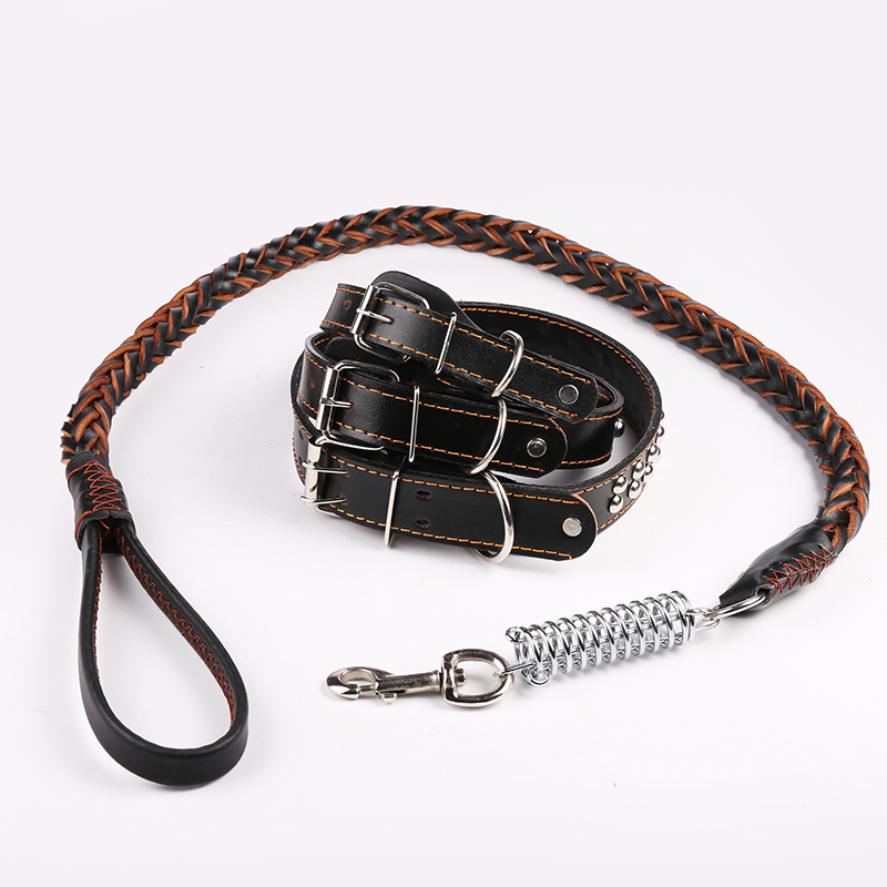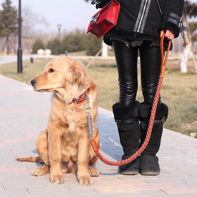 Explosion-proof pet traction rope in large dog cow leather compilation of large dog traction rope dog chain gold traction belt