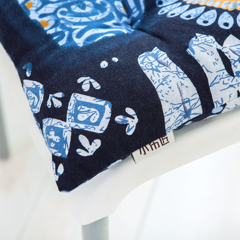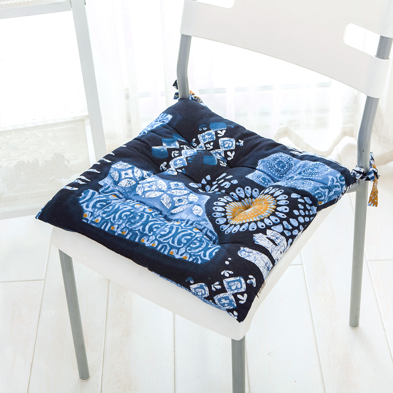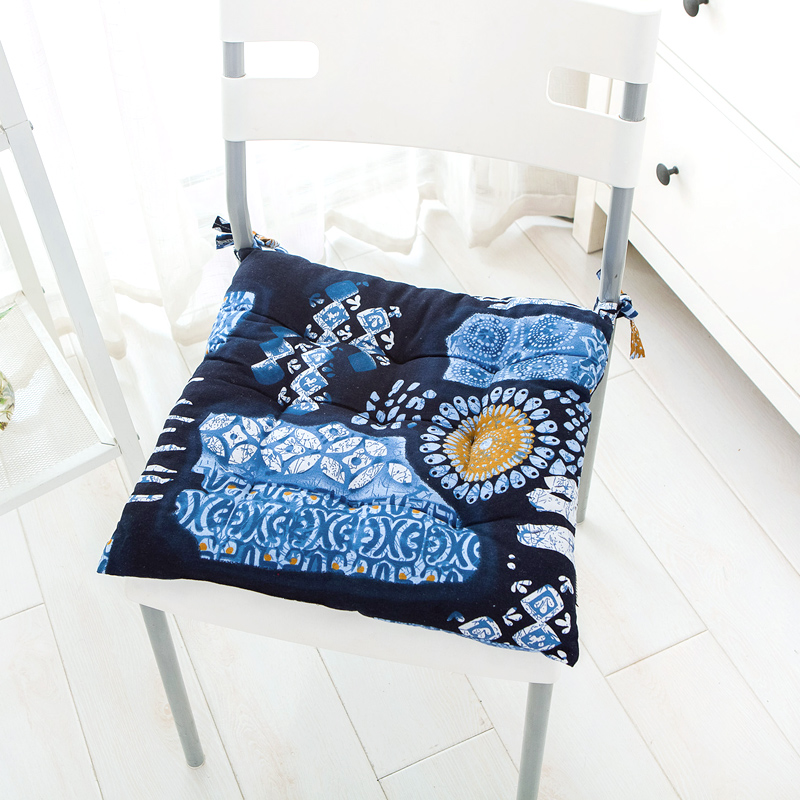 Chinese style retro national wind green flower thickened cushion chair cushion cotton linen lace office student dining chair seat cushion sub