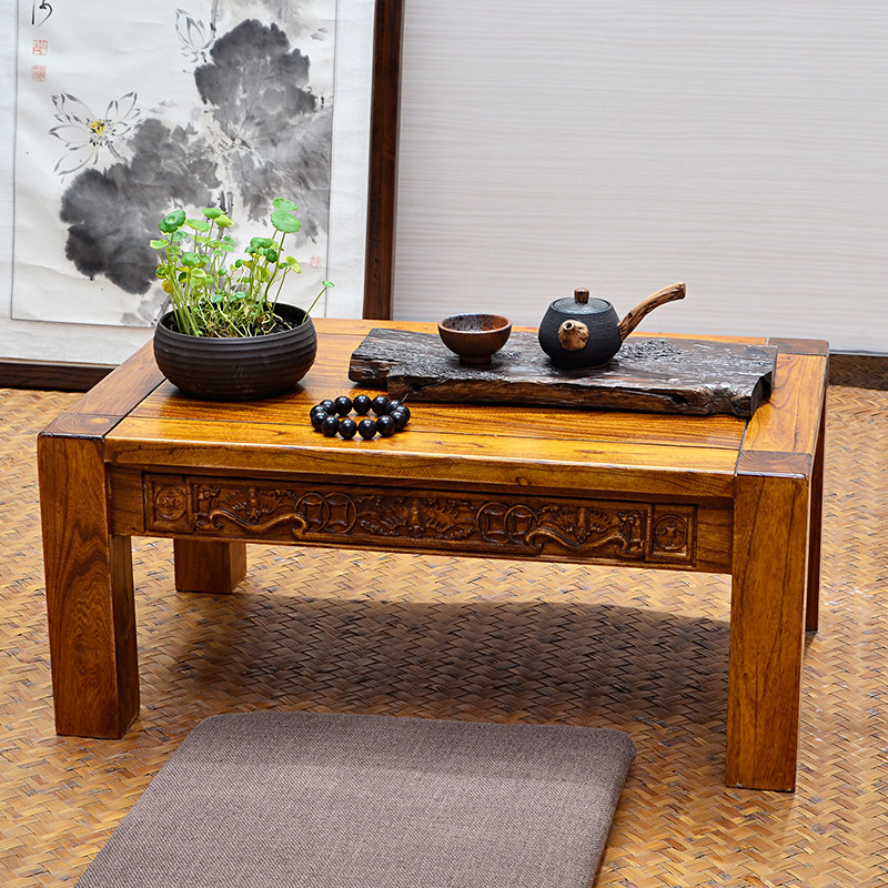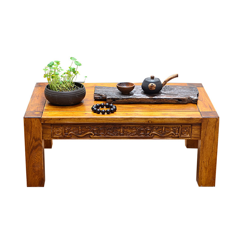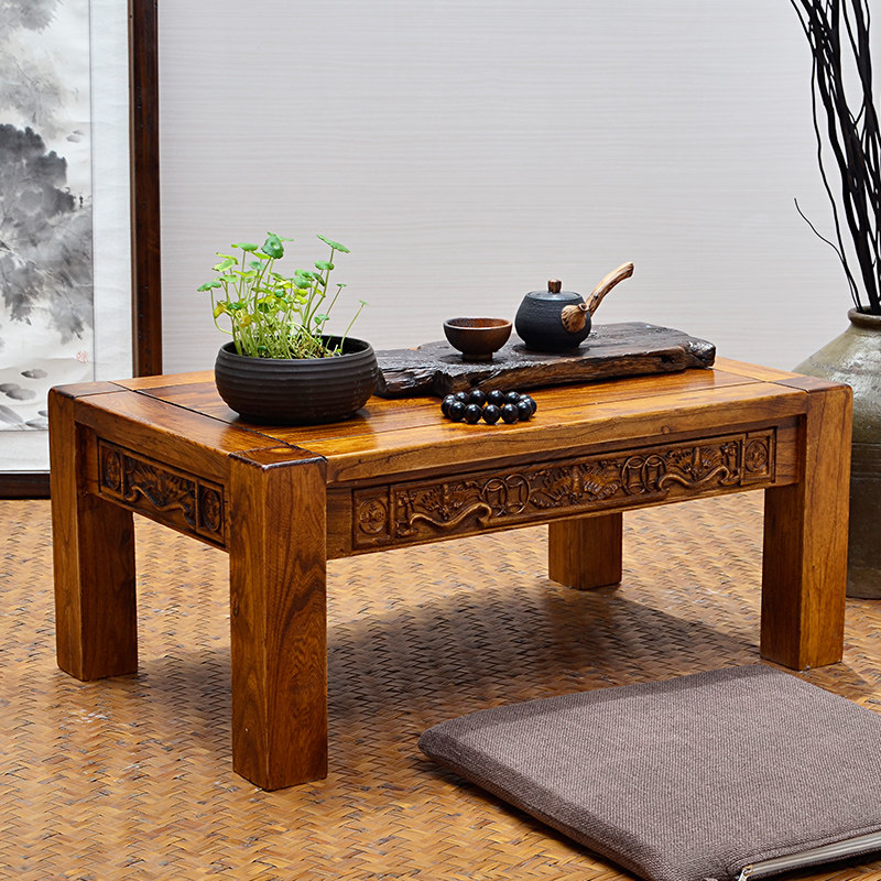 Chinese antique old elm tea table Kang table Solid wood carved tatami table Low tea table Kang several small square tables Low tables