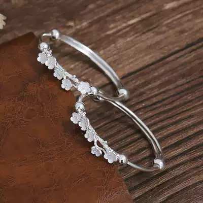 Nine music 990 silver bracelet plum blossom bracelet female national style push-pull literary solid simple personality temperament niche jewelry