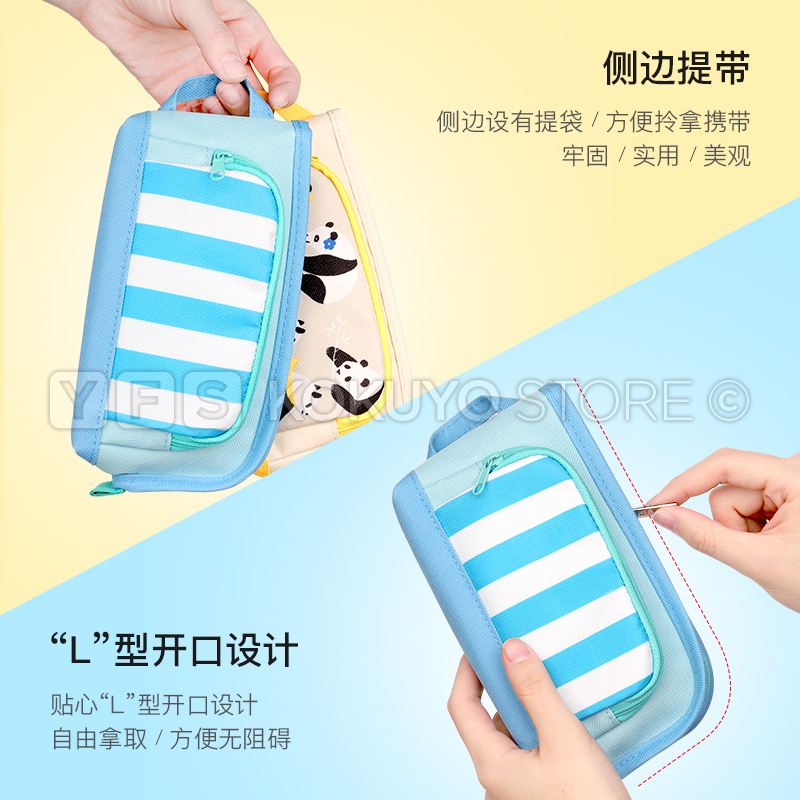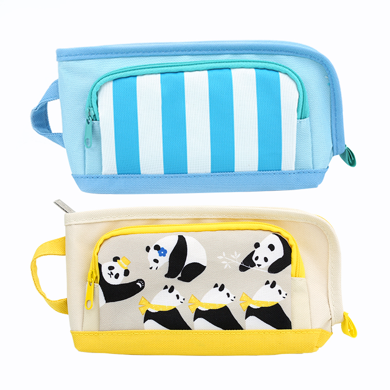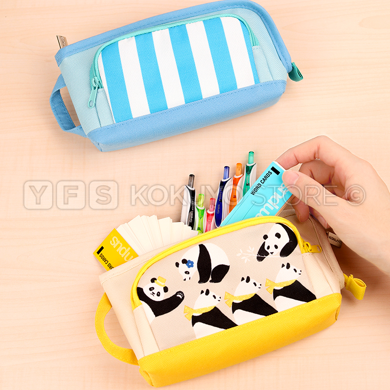 Japan KOKUYO Panda pen bag female net red primary school student stationery bag Canvas stationery box cloth Simple Japanese small fresh large capacity pen box pencil bag