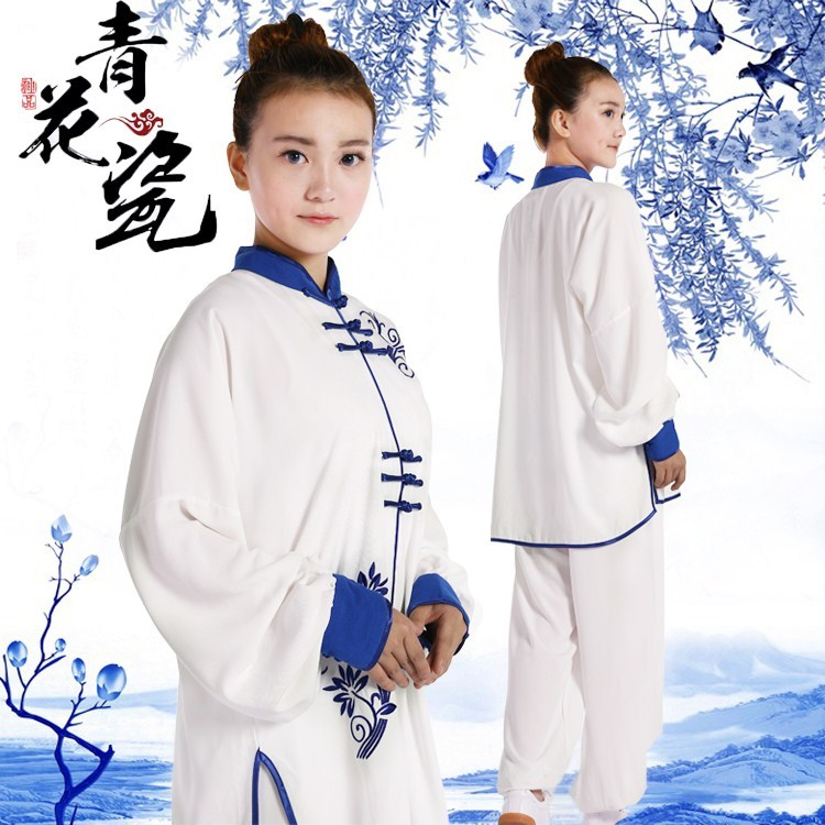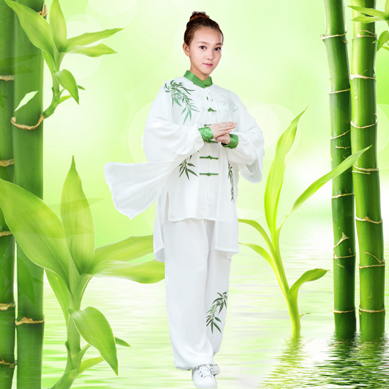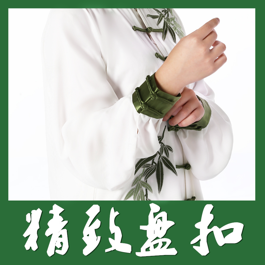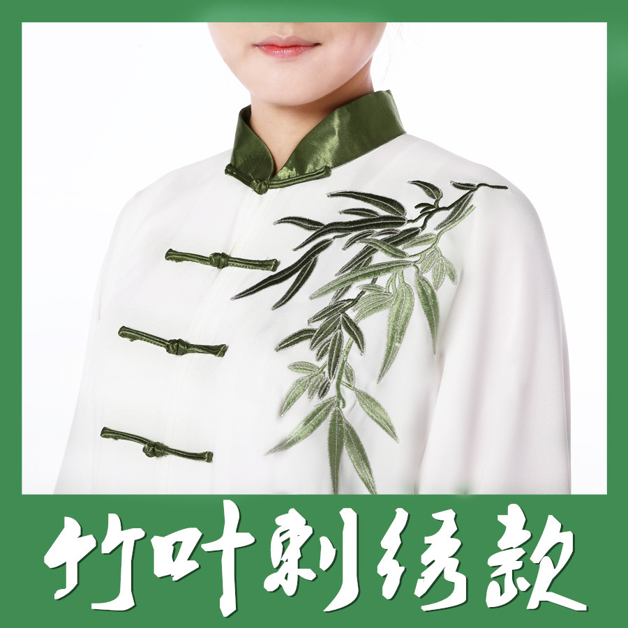 Bamboo Leaves Embroidered Taiji Clothes Women's Summer Men China Wind Martial Arts Suit Taijiquan Kongfu Clothing Green Flower Porcelain Embroidery