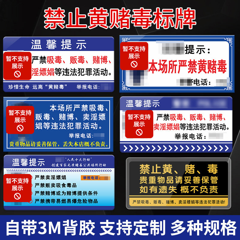 Huang Gambling Toxic Signs warm tips wall sticker Massage KTV Hotel three prohibited signs hotels warning signs