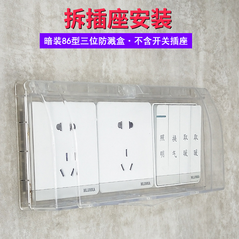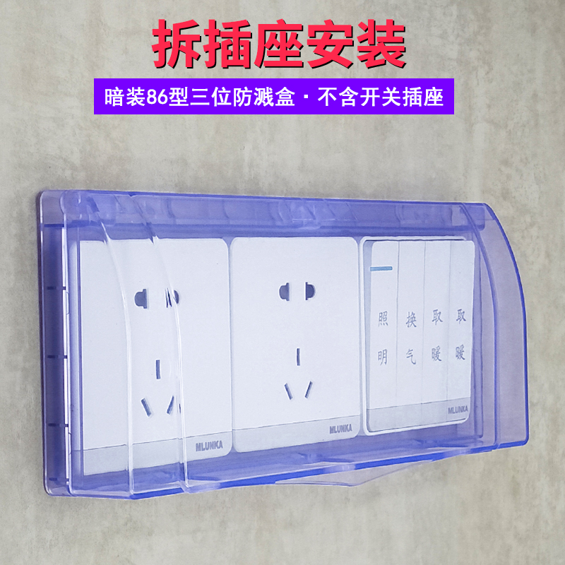 Bathroom champagne color 86 switch cover socket Powder room bed bag three-digit parallel waterproof box Transparent splash-proof box