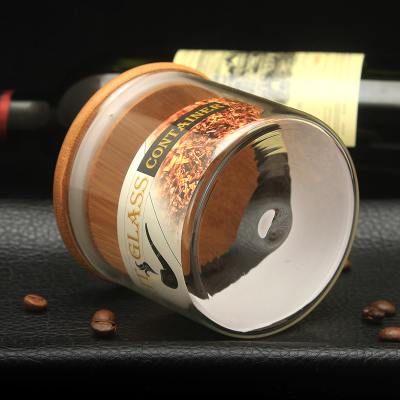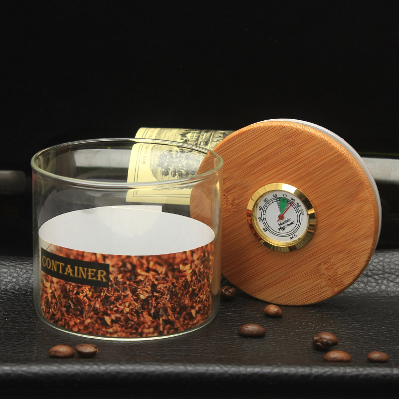 Tobacco Humidifier Glass Bamboo Lid Tobacco Storage Tank Humidifier Tank With Hygrometer Free Clay Tablet 500ml