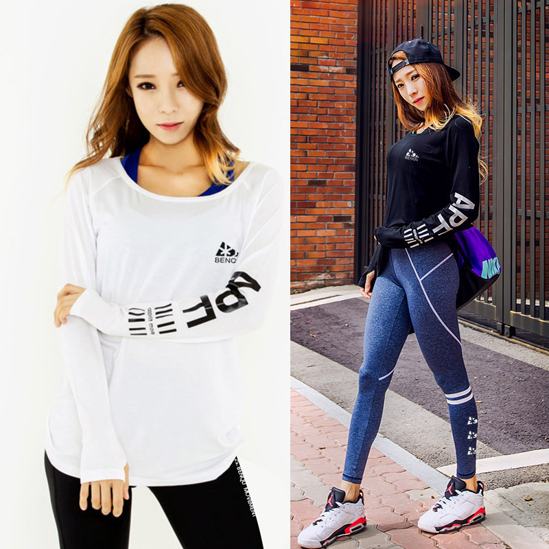 Sports T-shirts girl long sleeve long hide cover summer large running white fitness yoga shirt large T