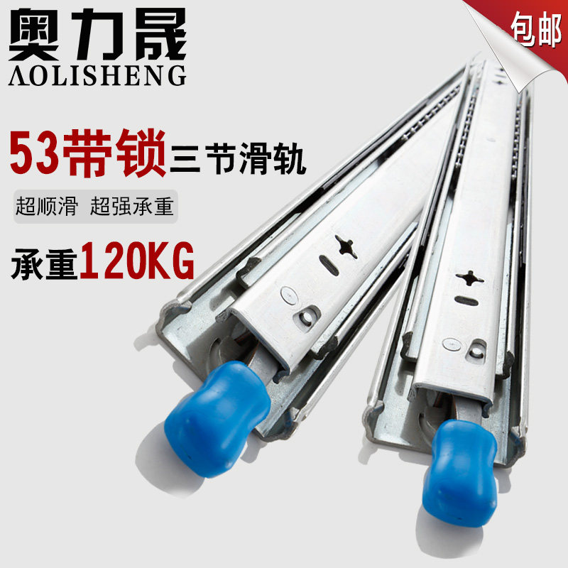 Aolisheng heavy-duty slide guide rail three-section rail thickened slide rail drawer track industrial track load-bearing guide rail 53 wide