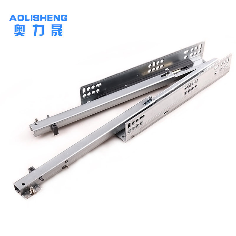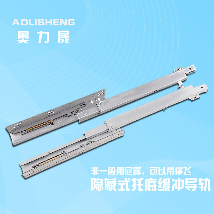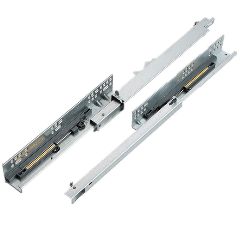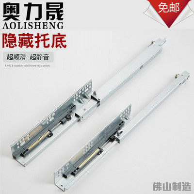 Drawer track 2-section buffer built-in bottom slide rail 3-section bottom hidden full-pull damping guide rail drawer