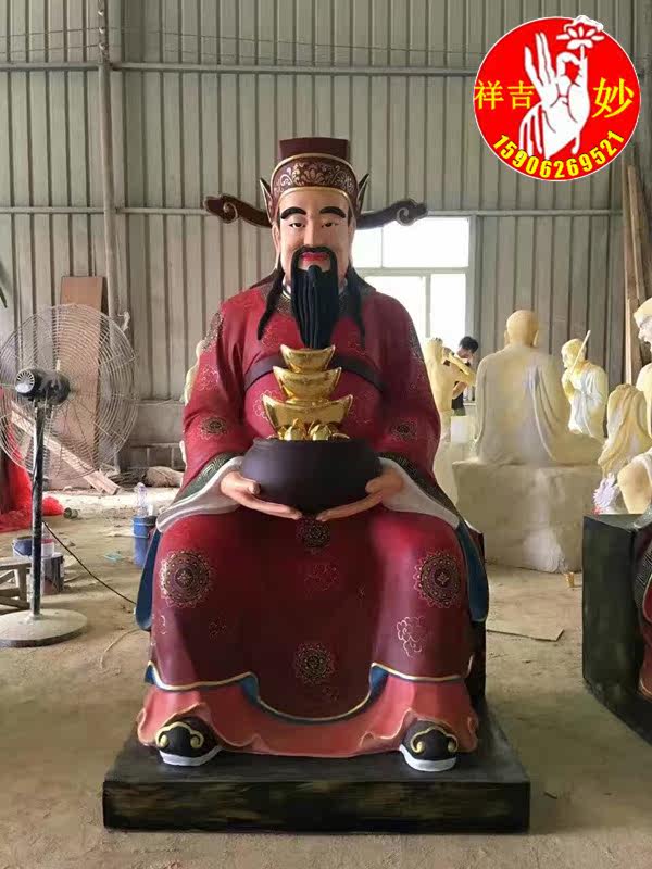 Glass fiber reinforced plastic five-way god of wealth God of wealth statue Taoist statue Wen god of wealth Wu God of wealth housewarming opening decoration