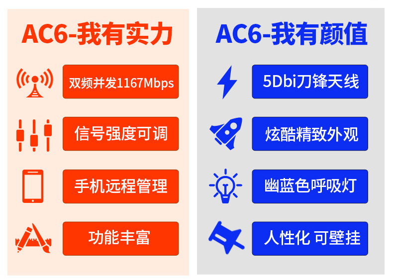 Tengda 1200M dual band wireless router Gigabit wifi household high speed 5G through wall king fiber high power AC