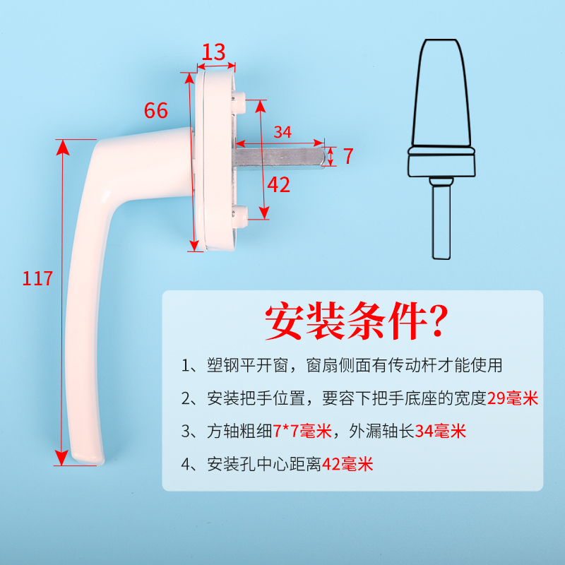 Thickened plastic steel window drive handle Plastic steel flat window handle Window handle Door lock Rotating connecting rod wrench lock