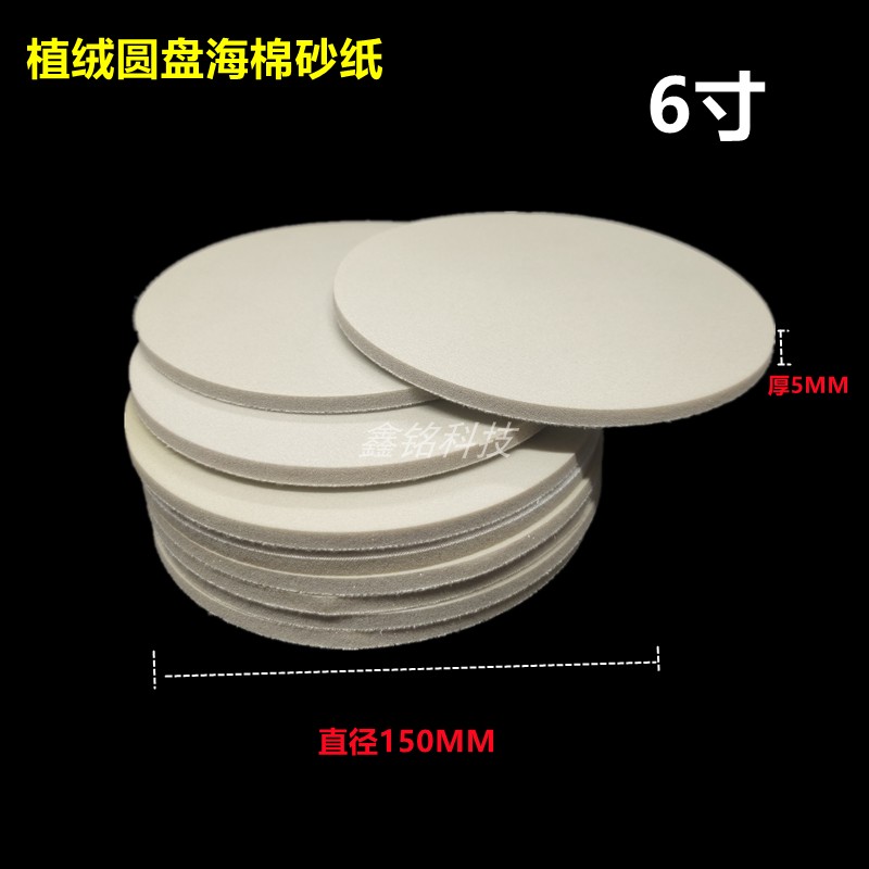 6-inch back suede sponge sandpaper 150MM round sandpaper car arc surface painted face plastic ABS polished polished thickness 5mm