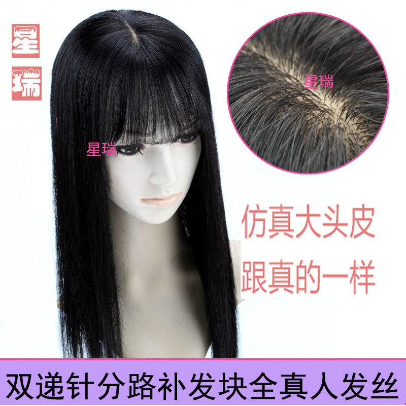 White-covering real hair wig real hair top of the head seamless delivery needle replacement hair block invisible replacement hair piece ladies long straight hair wig piece