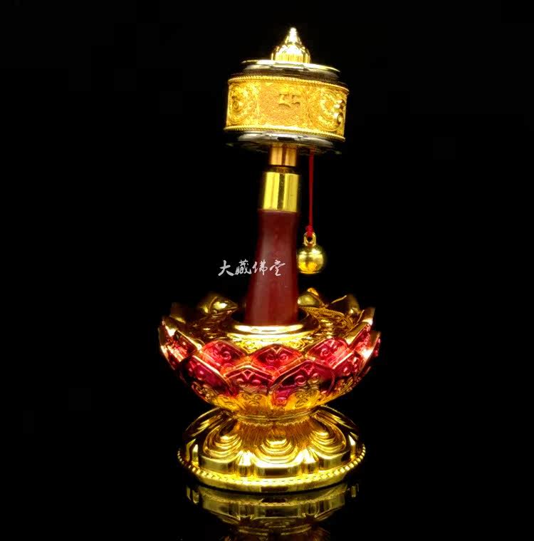 Resin eight auspicious large number of hand-shaking turn via wheel base Tibetan-to-pass with a rose gold transfer via a cylindrical lotus seat