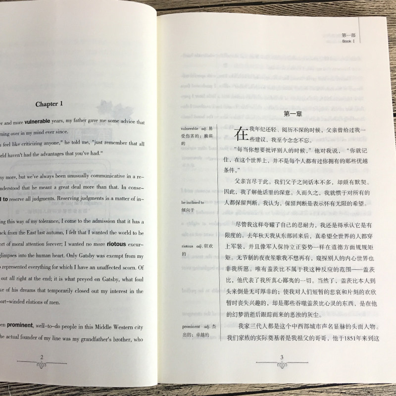 The Great Gatsby Chinese-English comparison English-Chinese bilingual version of the classic world famous foreign literature novel English version original original English reading materials junior high school students extracurricular reading books zy