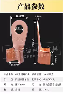 8 2 hole open nose OT-100A copper wire nose copper connector wire lug copper terminal 200 national standard copper