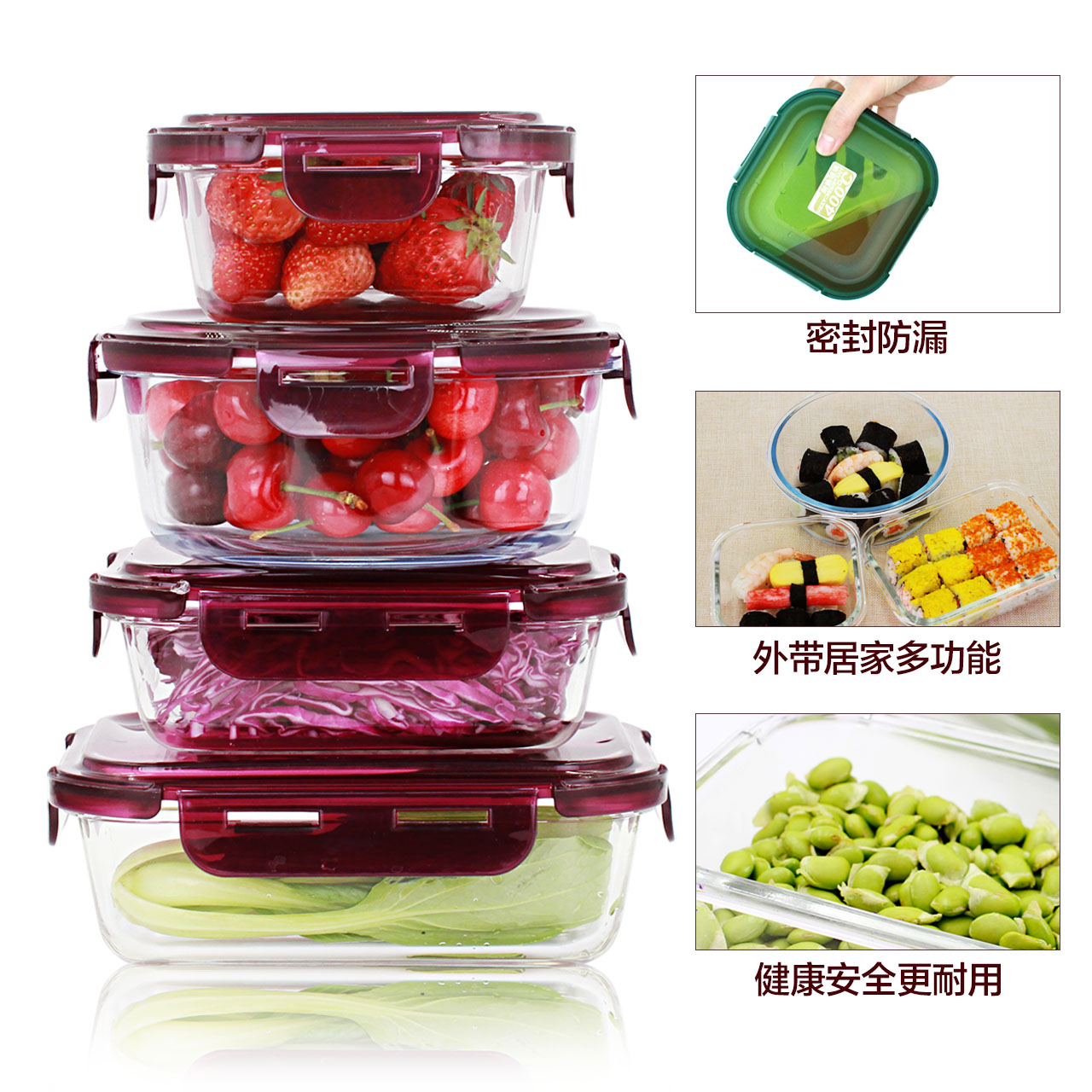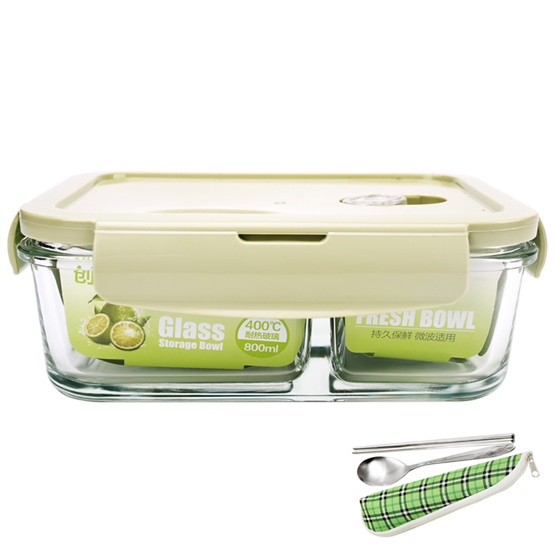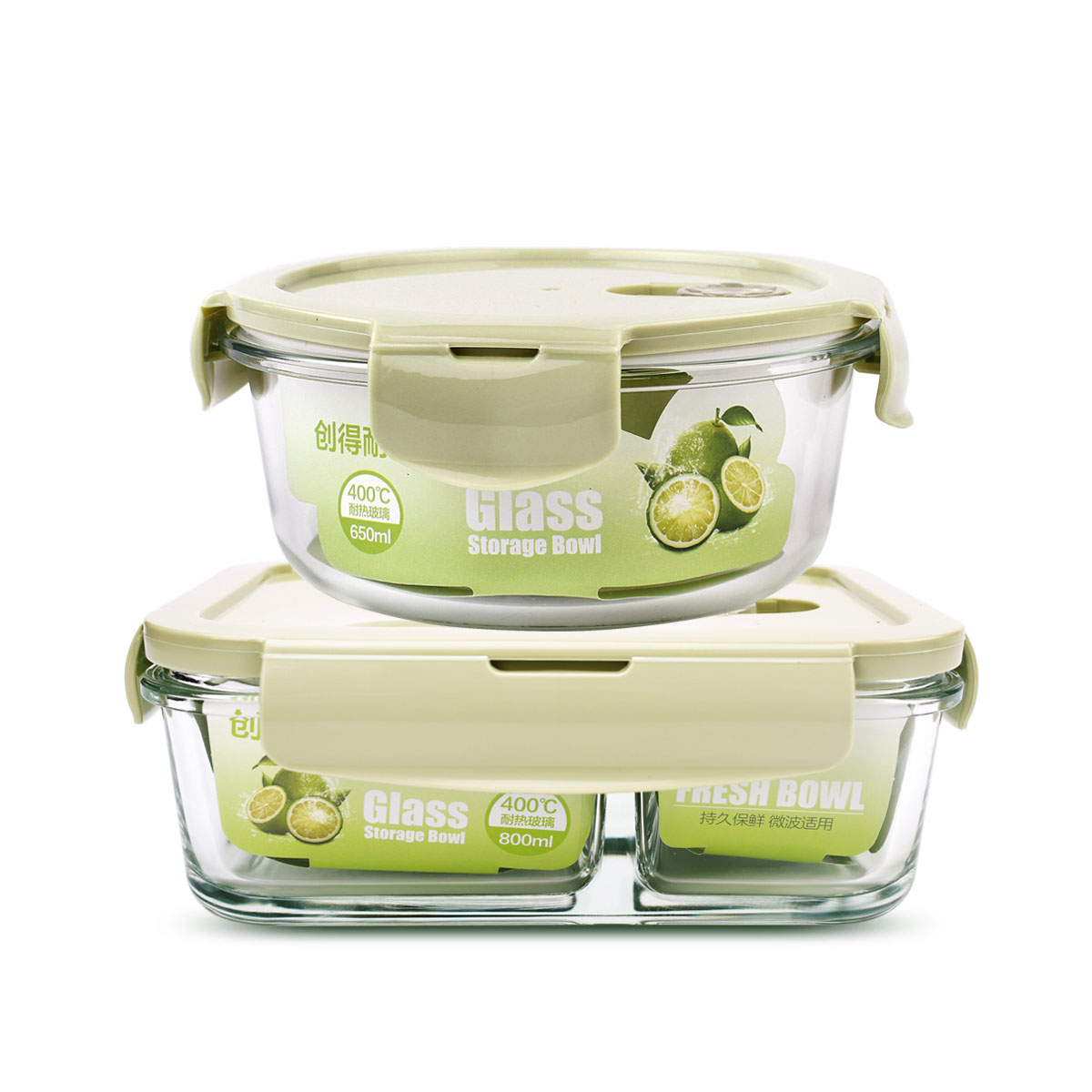 Chuangde office worker glass lunch box insulation Microwave oven special fresh lunch box Sealed with lid Separation bowl set