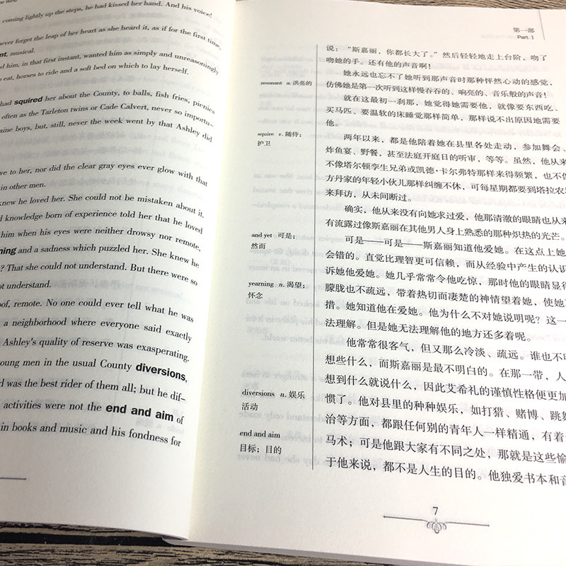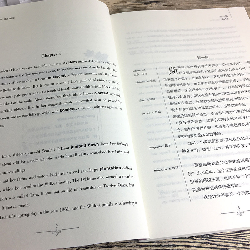 "Gone with the Wind" Chinese-English bilingual version Chinese-English bilingual version English-Chinese bilingual Chinese-English bilingual version classic world famous foreign literature novel English version original English reading materials extracurricular reading books for junior high school students
