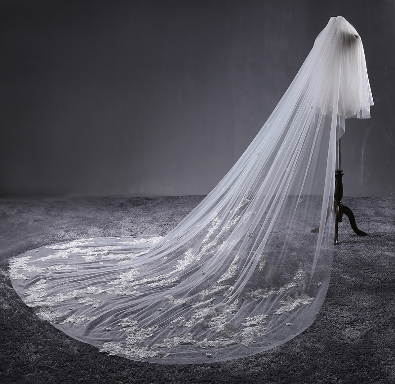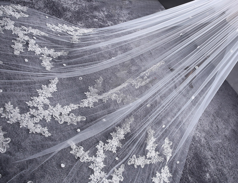 New Korean Romantic Lace Flowers long trailing soft yarn head yarn 3 8 m extra-long bridal wedding wedding yarn head yarn
