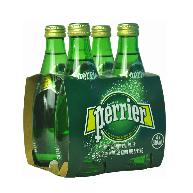 French imported beverage Perrier Paris water lemon flavor natural mineral water 330ml*4 bottles of bubble soda