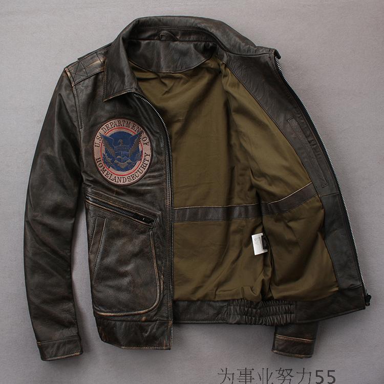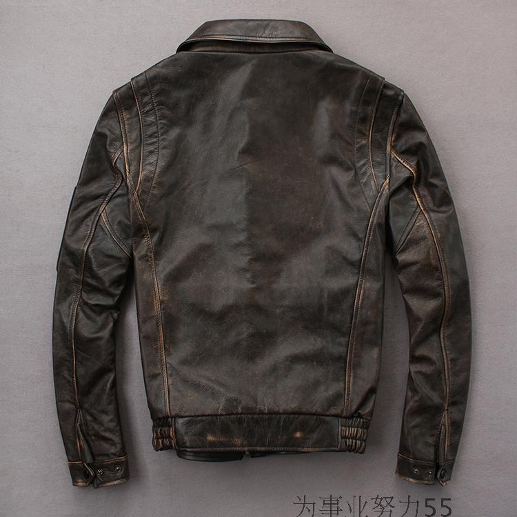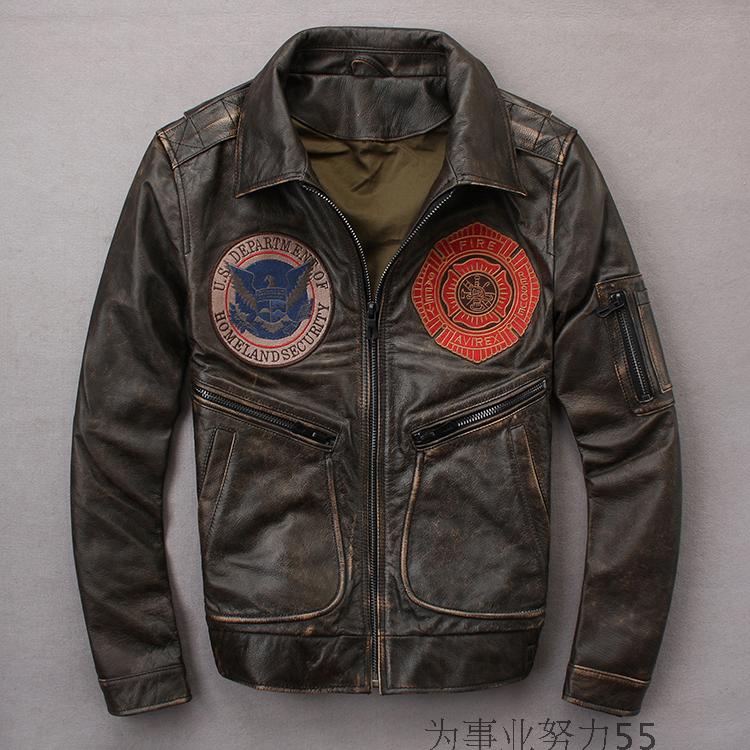 Men's Genuine Leather Jacket Distressed Leather Jacket Motorcycle Suit Men's Leather Jacket Lapel Slim Fit Embroidered Trendy Men's Jacket