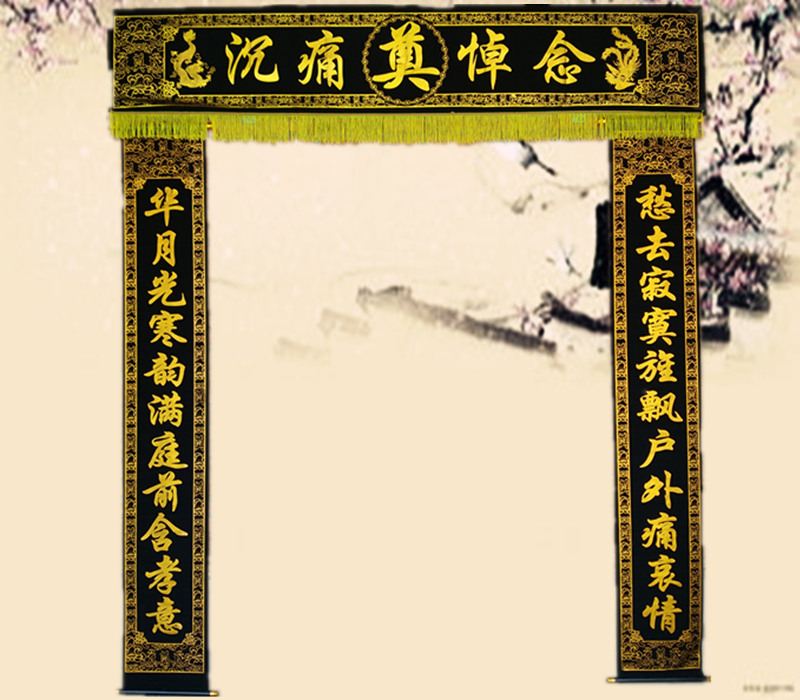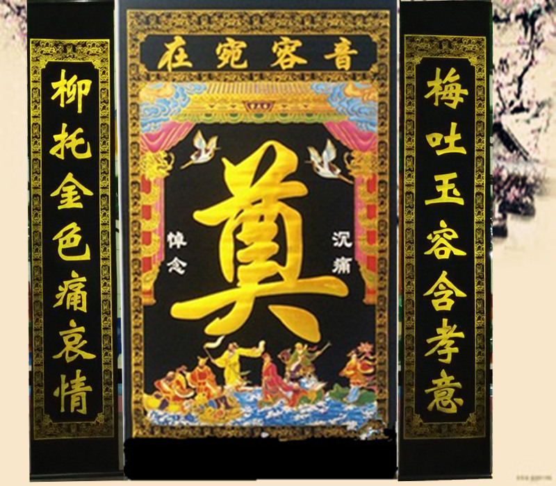High-grade bronzing Lingtang cloth Eight immortals flocking cloth Bronzing process Lingtang mural funeral white supplies wholesale