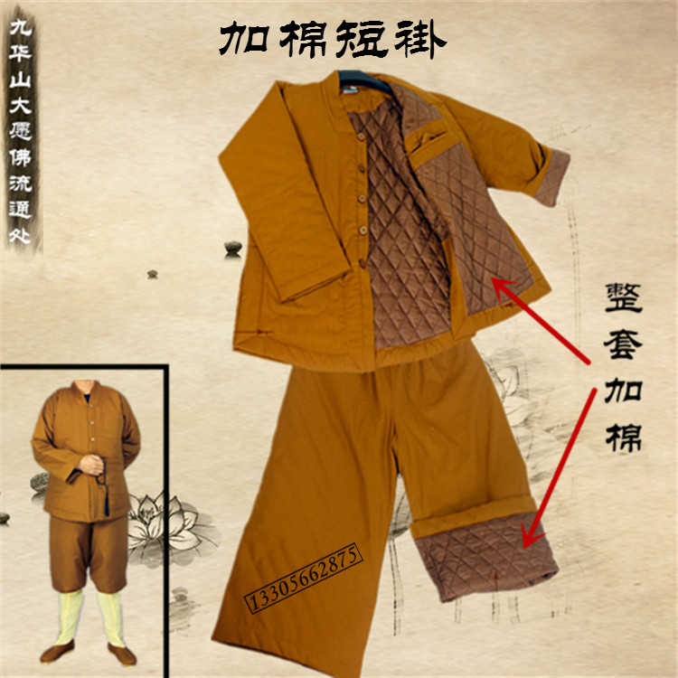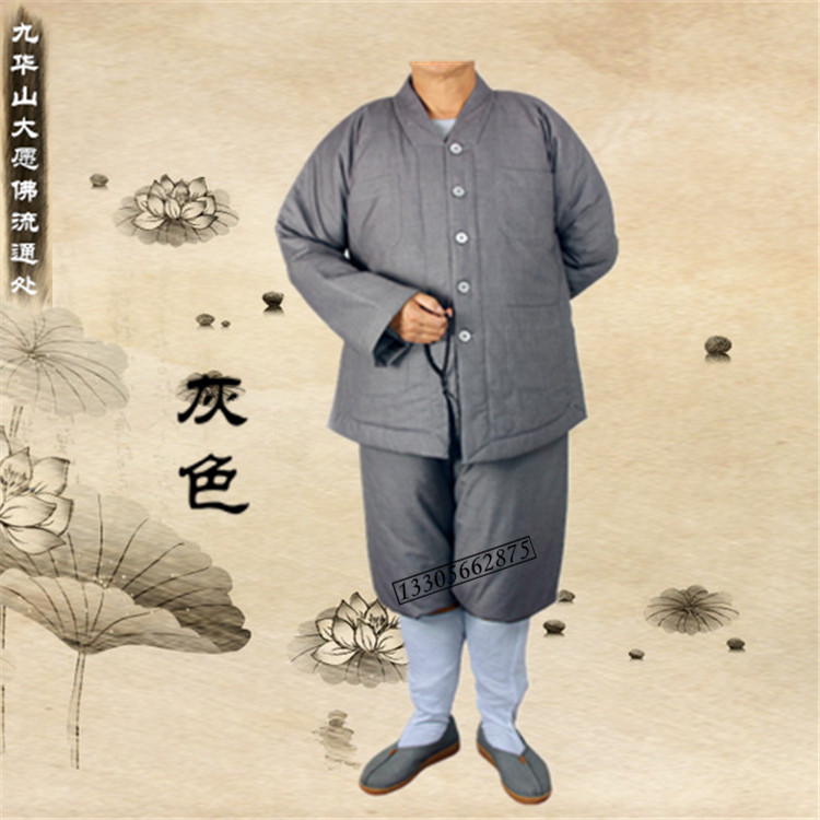 Monk Winter Plus Cotton Gushed Warm Monk Clothing Cotton Clothes Male And Female Monk Length Cotton Padded Jacket Long Jacket Short Coat Grey