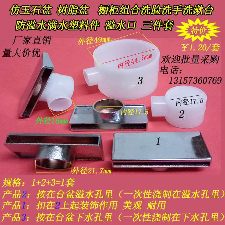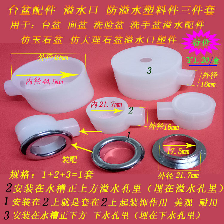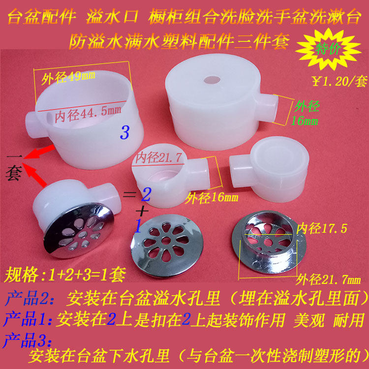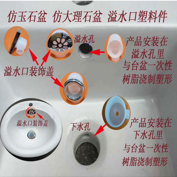 Basin overflow port Plastic accessories Decorative cover Integral cabinet Jade basin Hand wash basin anti-overflow return port Three-piece set