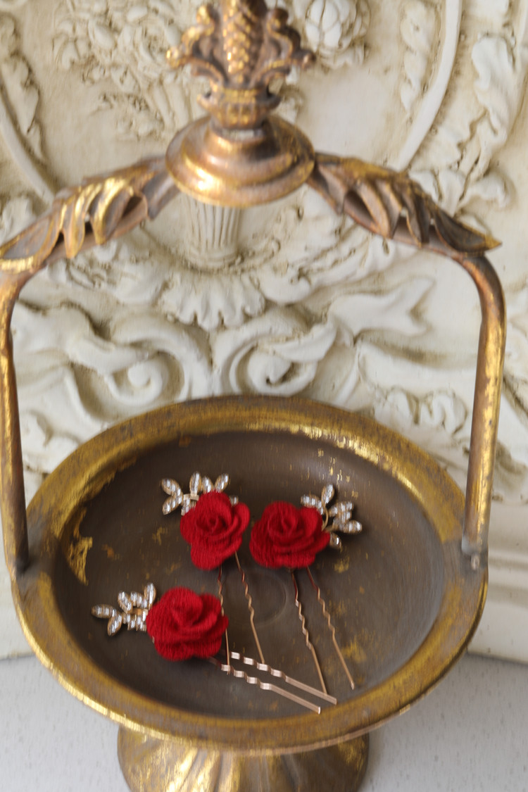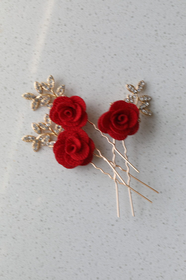 Rose-flower-blown U-fork hair must be incorporated into the bride classical wind shape photography rotten red rose rose hair