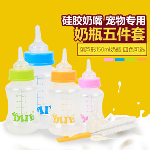 Mix 5 Pieces Pet Cat Dog Newborn Puppies Infant Cat Milk Bottle Suit Rabbit Mink Lacerator Nipple Bottle Brush