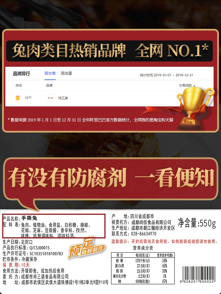 (SF air transport two pieces minus 30)Hand-torn rabbit whole large 550g (send Chili noodles) (SF Air Transport two pieces minus 30)Hand-torn rabbit 1 large rabbit leg 2 pieces (send Chili noodles