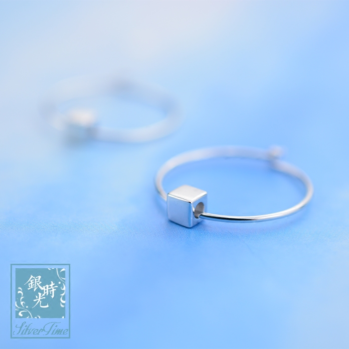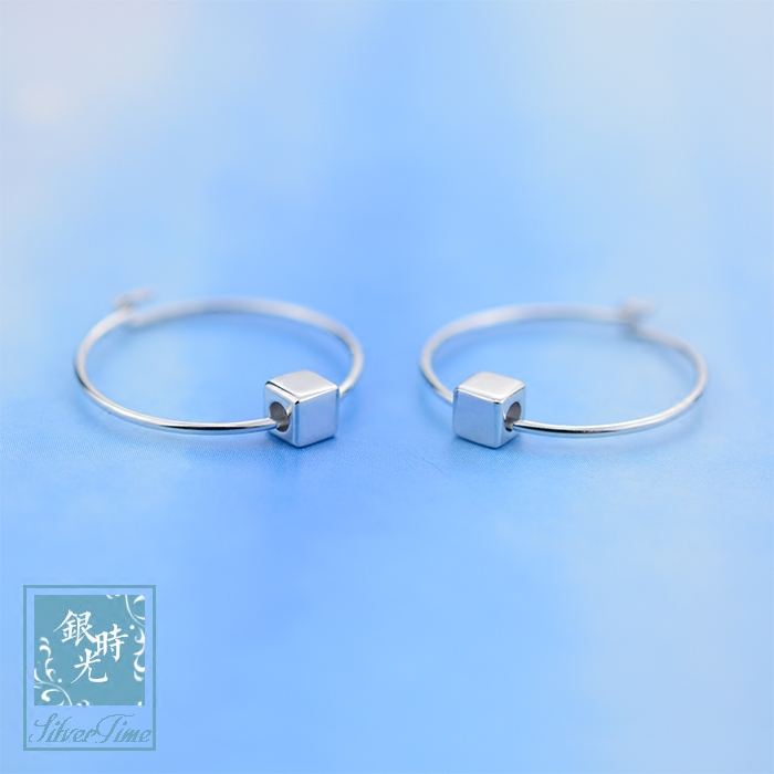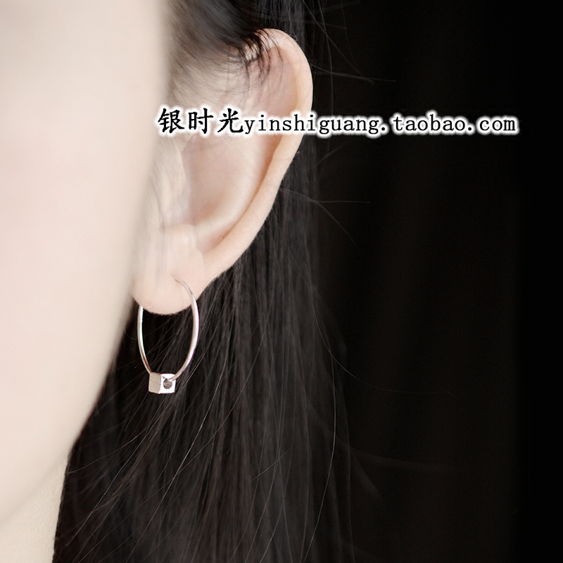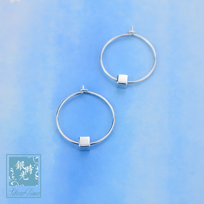 Silver time S925 pure silver ear ring small square large earring fashion personality Cube ear-pin round earring