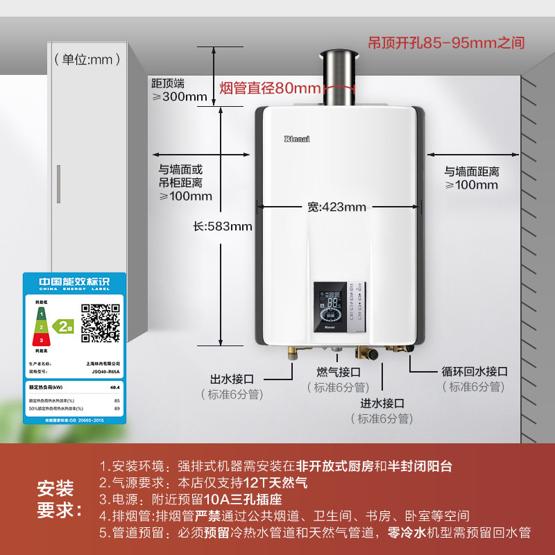 Rinnai Rinnai 20 liters R65A household gas water heater Gas instant heat intelligent zero cold water