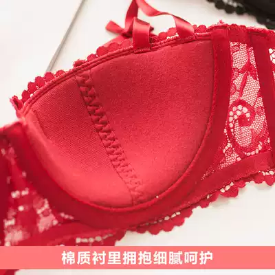Japanese half cup lace red underwear gather sexy this year bra thin elegant Japanese small bra set