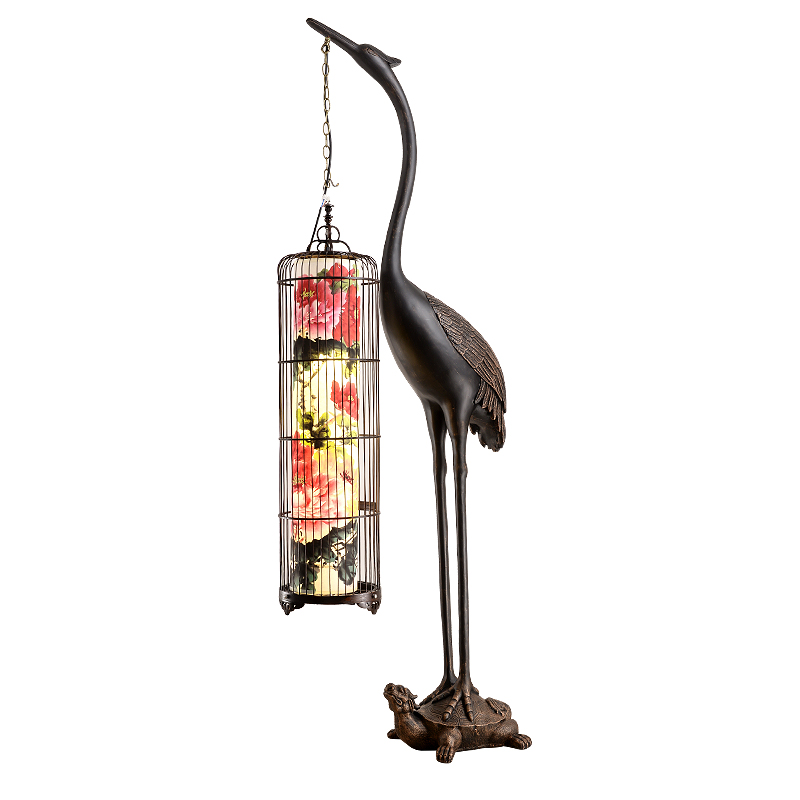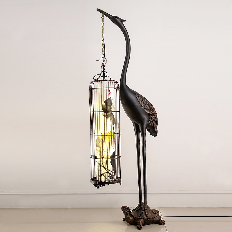Retro New Chinese Floor Lamp Vertical Living Room Tea Room Zen Birdcage Lamp Hotel Floor Crane Ornament Chinese Style